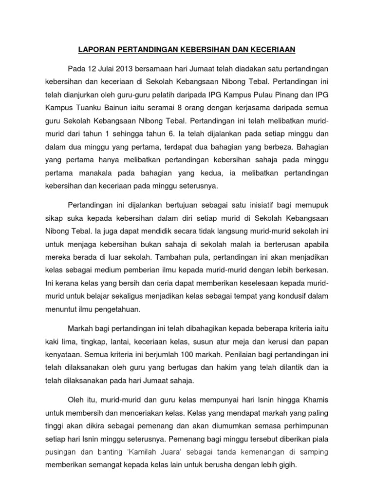 Laporan Pertandingan Kebersihan Dan Keceriaan Pdf